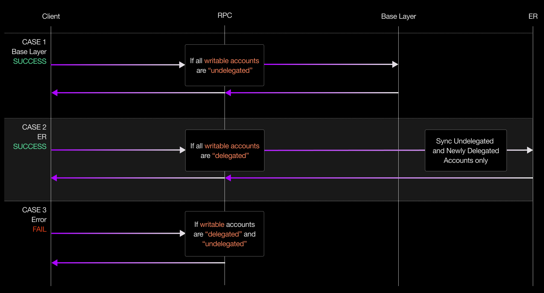 Based on the metadata, the router determines whether to send it to:- Ephemeral Rollup