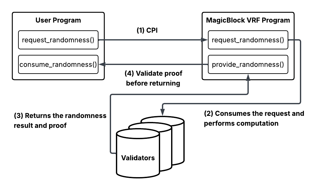 - Upon completion, it returns the result and proof to the MagicBlock VRF program.